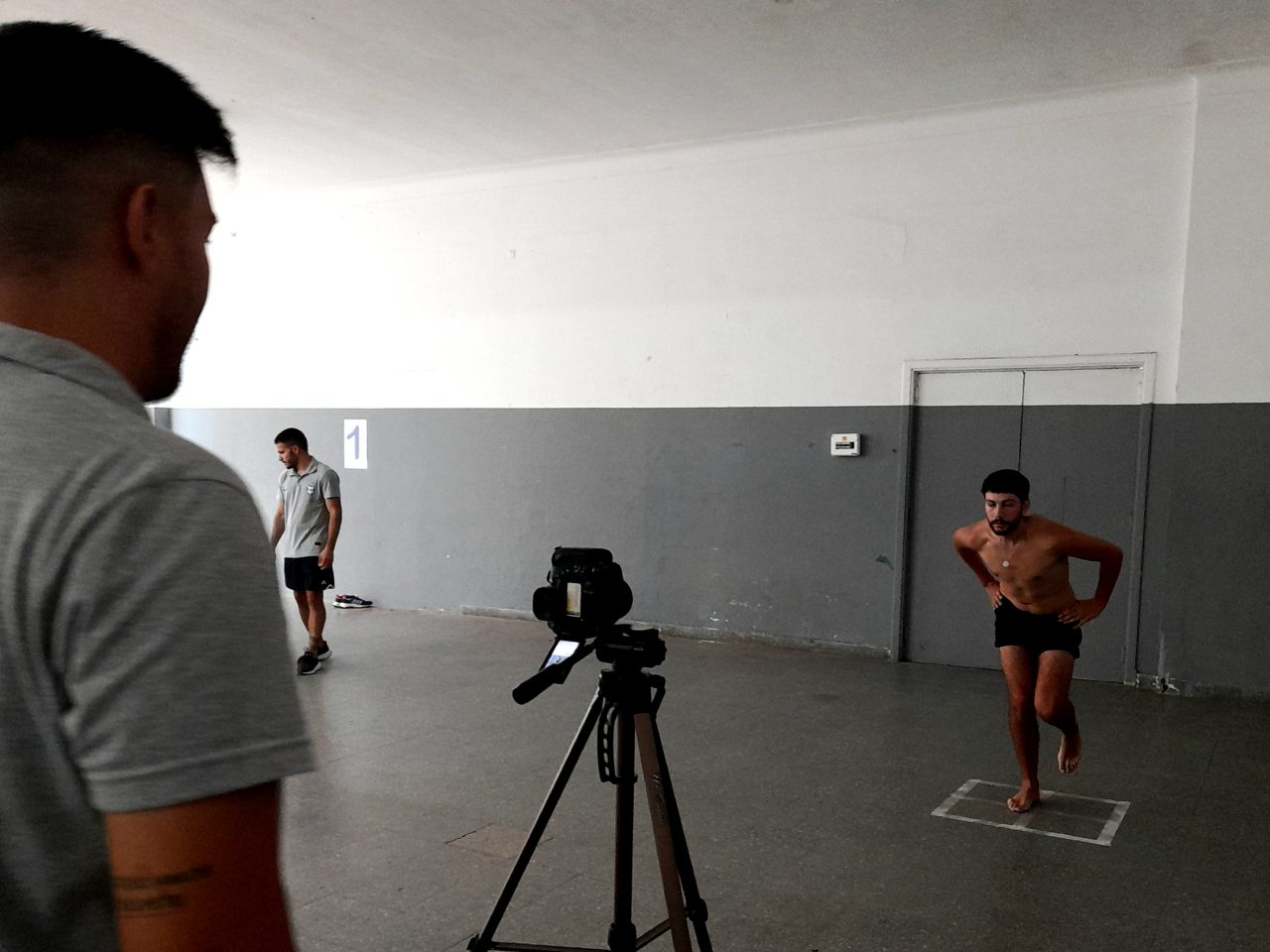 Estación Dinámica con profes a cargo de Pedro Coleff y kinesiólogos donde se midieron capacidades físicas con ejercicios de Screening Postural de Sentadilla de Arranque, Salto CMJ en plataforma de fuerza y movilidad de tobillo.